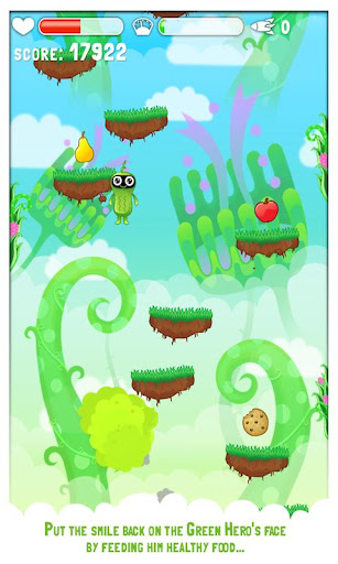 The gamer’s green hero jumps automatically, and its up to you to make sure he lands safely on platforms,picks up all the stray fruits, vegetables, and gold coins he comes across, and avoids fast food disasters on the way up. After all, after one too many greasy burgers our little green guy will get to fat to jump, and its game over for you!